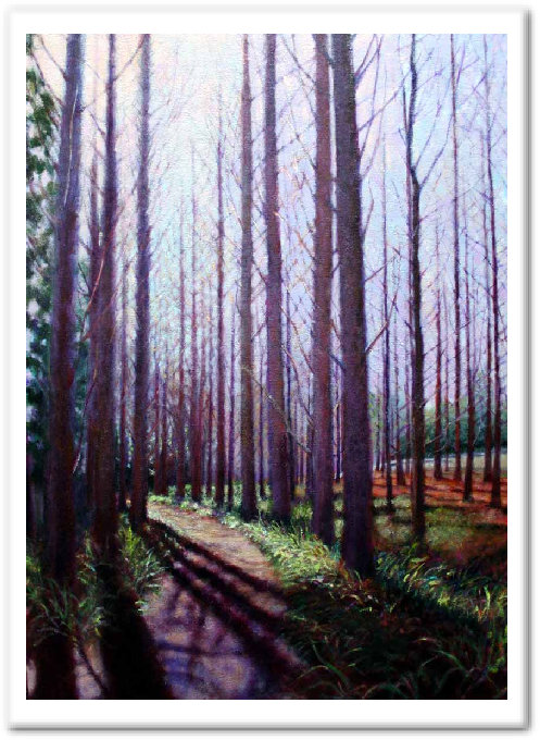 年明けに公園のそばの冬木立の道を黙々と歩いていました。 ふとなにげなく顔を上げると道の先は輝いていて、その光に希望を感じたのです。 暖かな春の訪れずれの予感と、道の先の希望の光。 描きながら自分気持ちが落ち着いて穏やかな気持ちになれた作品です。 |